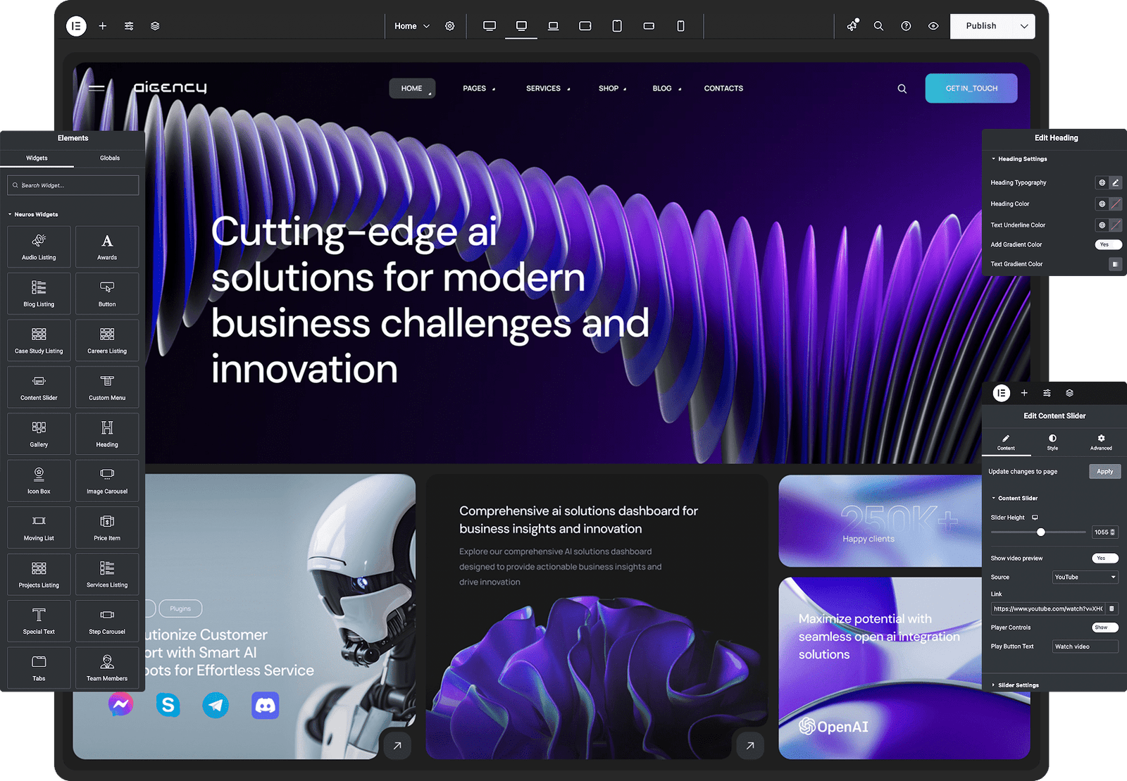 Are you looking to consolidate all our templates into one site, or prefer to interchange content sections? Elementor page builder makes both options achievable.
